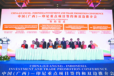 集團(tuán)公司黨委書(shū)記、董事長(zhǎng)鄭津作為簽約企業(yè)代表受邀參加會(huì)議,與來(lái)自廣西各地市、重點(diǎn)園區(qū)的代表,及印尼政商界人士齊聚一堂,暢敘合作新機(jī)遇。