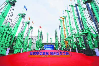中國工程機械工業(yè)協(xié)會樁工機械分會會長崔太剛;上海機電股份有限公司紀委書記丁靜羽;股份公司黨委書記、董事長、首席執(zhí)行官曾光安,執(zhí)行董事、高級副總裁文武,高級副總裁黃祥全,副總裁、上海金泰董事長袁世國;上海金泰黨委書記、副總經(jīng)理陳雪英,總經(jīng)理黎隸萬等出席活動。