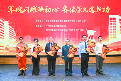 自治區(qū)黨委退役軍人事務(wù)工作領(lǐng)導(dǎo)小組辦公室副主任、自治區(qū)退役軍人事務(wù)廳副廳長(zhǎng)王幼林,集團(tuán)公司黨委副書(shū)記、紀(jì)委書(shū)記、工會(huì)主席賴(lài)頌平,柳州市人民政府二級(jí)巡視員袁燕珍等領(lǐng)導(dǎo)出席活動(dòng)。