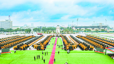 助力加納基建 加納總統(tǒng)出席柳工千臺設(shè)備交付儀式