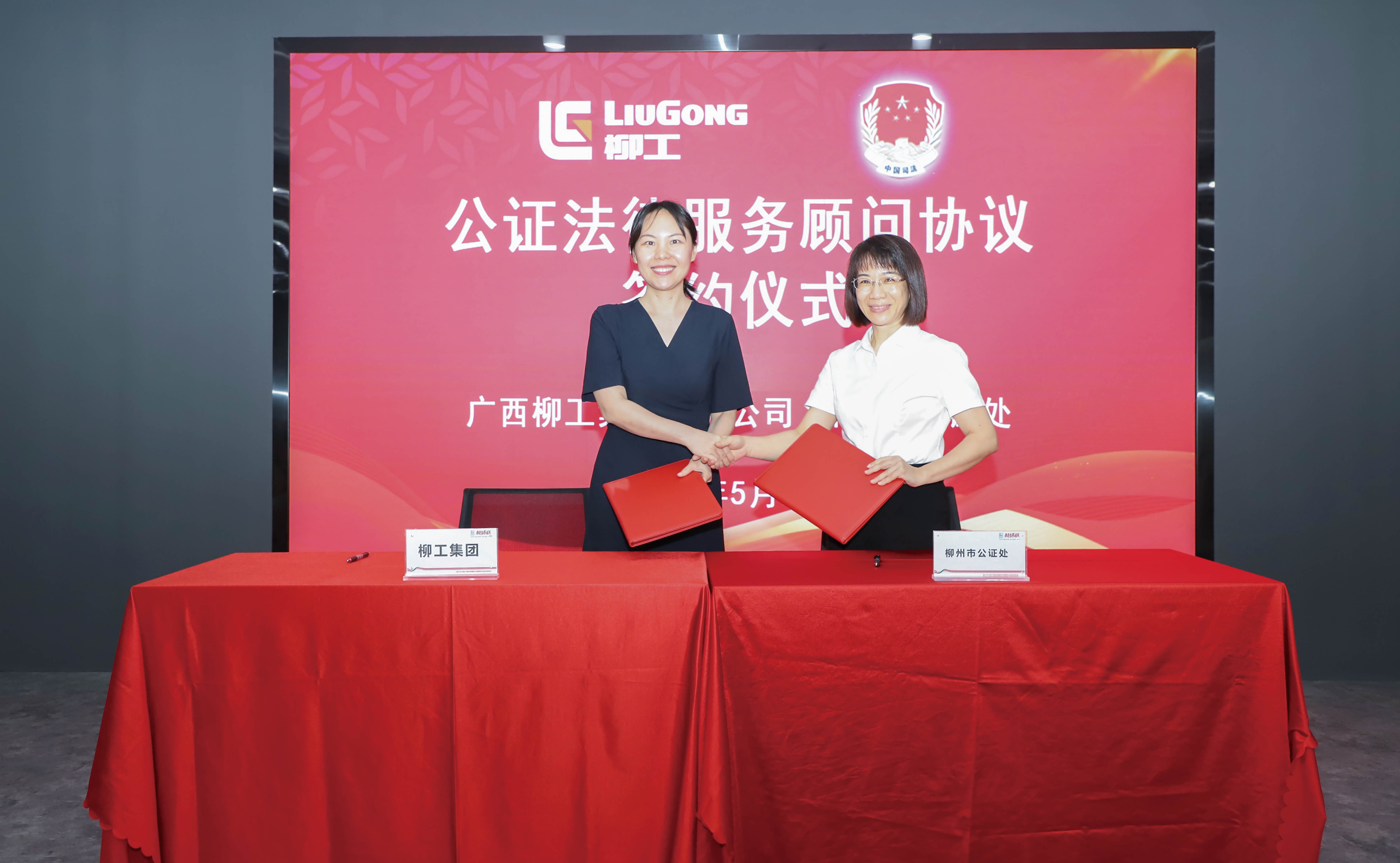 座談會(huì)后,廣西柳工集團(tuán)有限公司法務(wù)總監(jiān)韋江溢、市公證處主任鐘百雨分別代表柳工集團(tuán)、市公證處共同簽署了公證法律服務(wù)顧問協(xié)議。