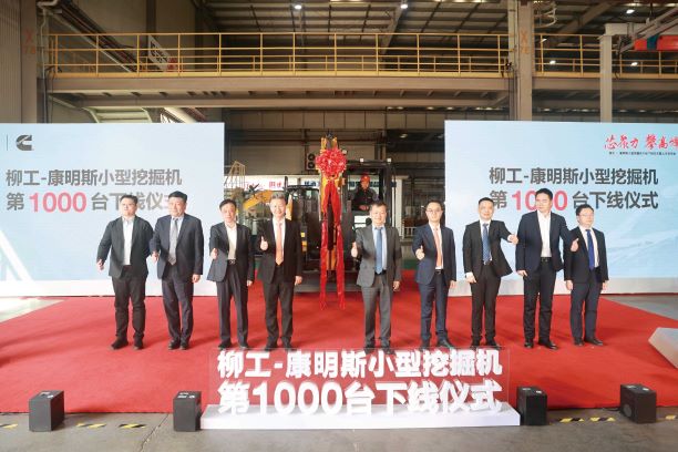 3月19日,第1000臺搭載康明斯E2.8發(fā)動機(jī)的小型挖掘機(jī)下線儀式在柳工東部研發(fā)制造基地舉行。