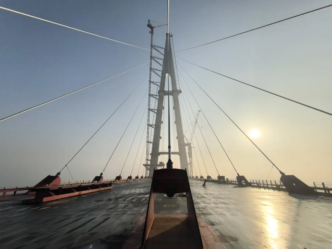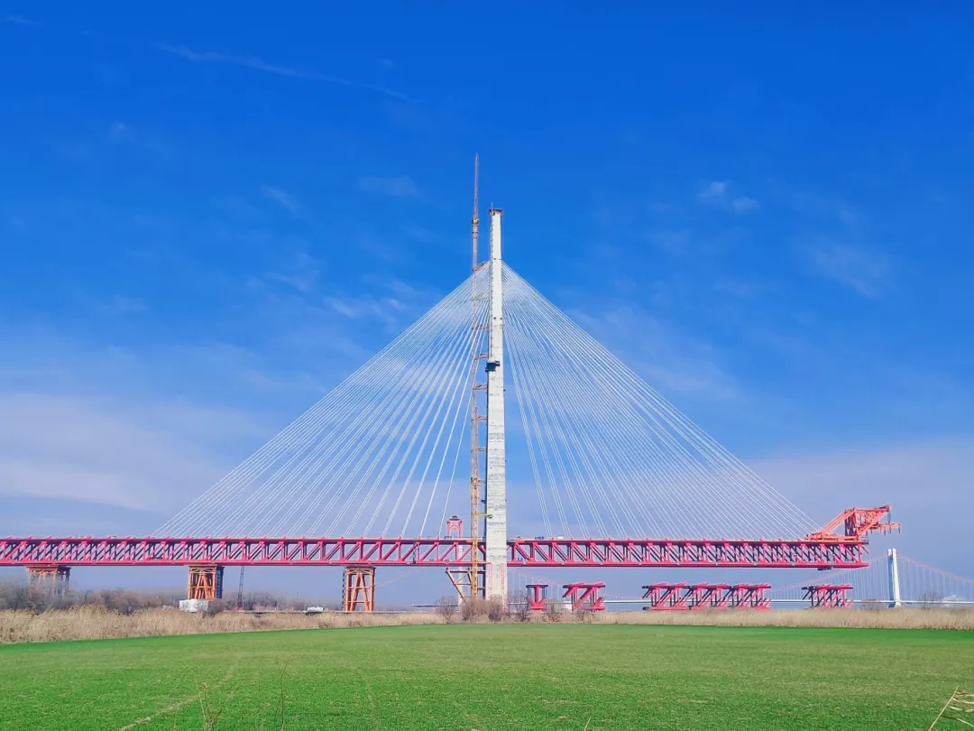 安徽省馬鞍山公鐵兩用長江大橋主汊航道橋,是新建巢湖至馬鞍山城際鐵路關(guān)鍵控制性工程,是目前世界上在建的跨度最大 (主跨2x1120米) 的三塔兩主跨斜拉橋,同時(shí)也是聯(lián)長最長、塔高最高的公鐵兩用斜拉橋。
