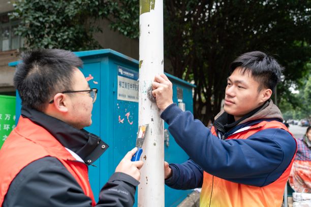在小區(qū)樓棟口、路燈邊,柳工青年志愿者們正用手中的小鏟,一點點地把違規(guī)張貼的“牛皮癬”鏟除,恢復干凈整潔的社區(qū)環(huán)境。志愿者們身體力行,以耐心、熱情的志愿服務傳承雷鋒精神,為廣大居民辦好事、辦實事、辦暖心事。