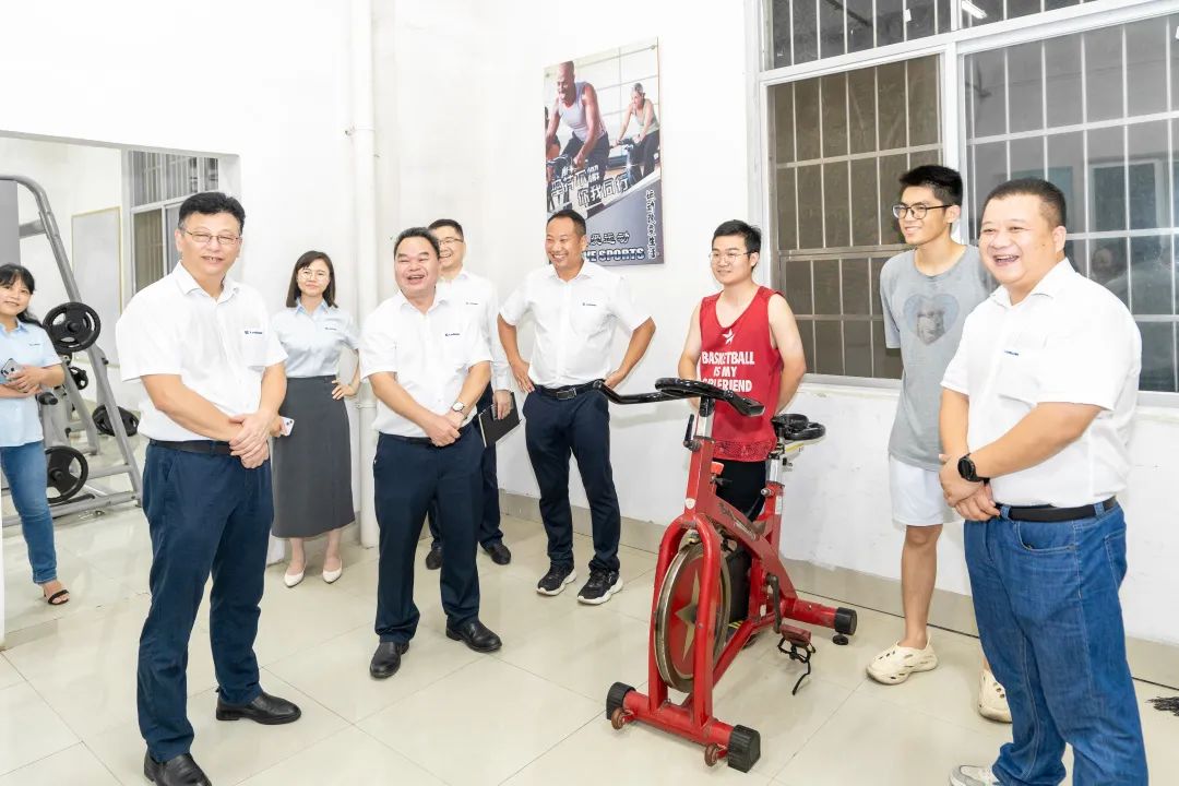 隨后,調(diào)研組來到健身房與正在健身的青年職工親切交流。鄭津詢問大家日常鍛煉時長、健身設(shè)施使用情況等,并希望青年職工們放下手機,走出宿舍,多運動多鍛煉,以一個強健的體魄更好地投入到工作中去。