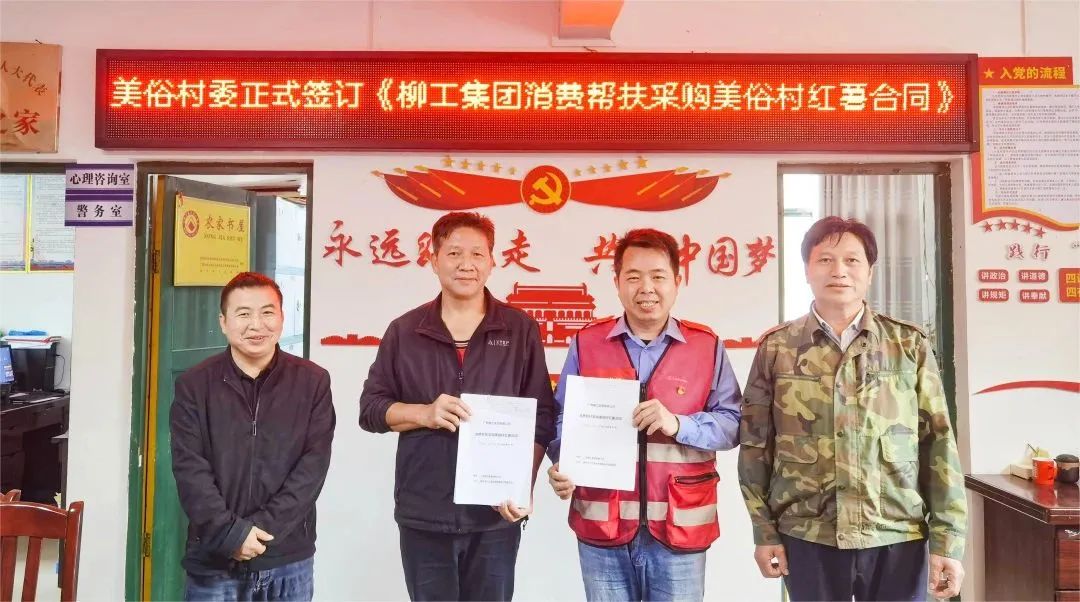 10月13日,三江縣林溪鎮(zhèn)美俗村村委與柳工集團簽訂了《柳工集團消費幫扶采購美俗村紅薯合同》。至此,柳工集團已連續(xù)四年大批量采購定點幫扶村的紅薯產(chǎn)品,此次的采購量將達到10萬斤。