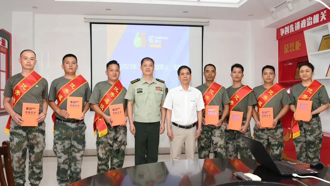 隨后,李于寧與武警柳州支隊(duì)首長共同為柳工2023年“優(yōu)秀退役軍人”獲獎代表頒發(fā)了榮譽(yù)證書,并鼓勵他們在工作中繼續(xù)保持軍人本色,再接再厲,勇創(chuàng)佳績。