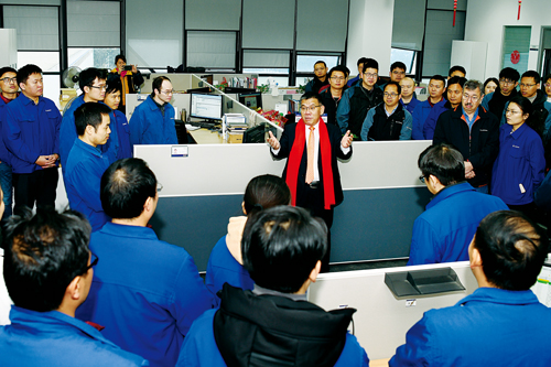 在全球研發(fā)中心,曾光安分別看望慰問了研究總院、裝載機研究院、挖掘機研究院、傳動件研究所等院所的工程技術(shù)人員,向大家致以新年的祝福問候。他感謝過去一年公司全體研發(fā)技術(shù)人員為公司發(fā)展做出的不懈努力。他強調(diào),搞產(chǎn)品開發(fā)一定要有創(chuàng)新力,要有自己的核心競爭力技術(shù),要摒棄模仿別人產(chǎn)品的“跟班”做法。他希望2019年,裝載機研究院和挖掘機研究所在產(chǎn)品開發(fā)領(lǐng)域取得新碩果。