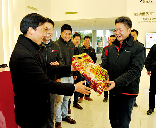裝載機公司的員工們準時回到工作崗位,抖擻精神,開啟新一年的征程。公司黨委書記、董事長曾光安等領(lǐng)導(dǎo)為到崗的員工送上了新春祝福。員工們臉上洋溢著濃濃的春意,嘴角掛著幸福的微笑,從公司領(lǐng)導(dǎo)手中接過新春慰問品的同時,也接收了新的指令。