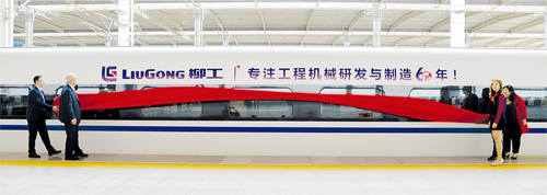 現(xiàn)場嘉賓為“柳工·和諧號”揭幕