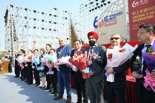 中國出口信用保險公司副總經(jīng)理黃志強、柳工合作方代表德國ZF公司工業(yè)技術事業(yè)部副總裁Udo Kneitz、柳工國際經(jīng)銷商代表印度經(jīng)銷商BMR公司Manjit Singh Makkar、柳工原黨委書記、董事長張沛以及柳工工人代表廖國鋒也分別上臺進行了發(fā)言,表達了對柳工60周年華誕的美好祝愿,并殷切期望柳工未來發(fā)展更加輝煌。