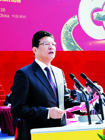 柳州市市長吳煒向公司勞模頒發(fā)證書和鮮花