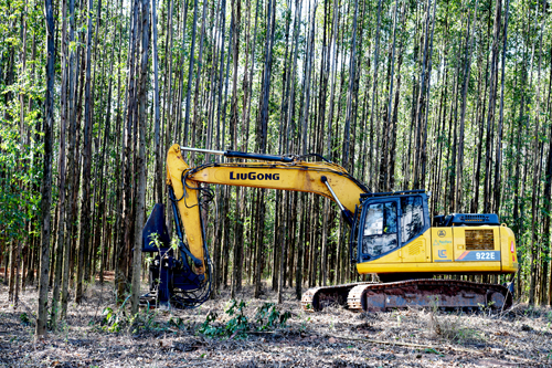 汽車飛馳在莫吉瓜蘇市平坦筆直的公路上,一路美景盡收,但進(jìn)入林區(qū)后道路變得蜿蜒崎嶇,30多公里的路程,我們卻走了一個(gè)半小時(shí)。穿過大片大片整齊的桉樹林,在一片已經(jīng)砍伐完成的木材旁,只見柳工CLG922E挖掘機(jī)正在矯健地?fù)]舞著長(zhǎng)臂進(jìn)行裝車。不到十分鐘的時(shí)間,一大卡車木材便在柳工CLG922E挖掘機(jī)這個(gè)得力助手的幫助下裝運(yùn)完畢。
