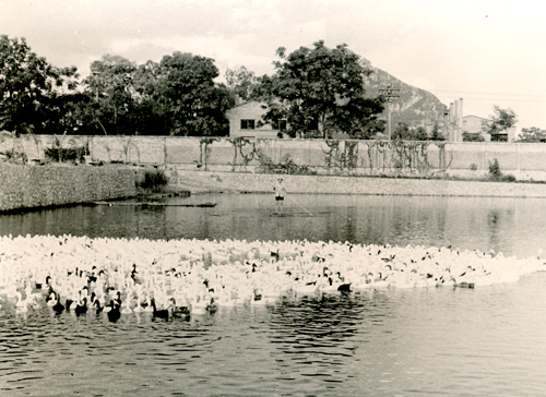 上世紀六七十時代,柳工家屬農(nóng)場的養(yǎng)殖場景象。養(yǎng)殖場建在柳工大魚塘堤岸(現(xiàn)在的柳工·頤華城內(nèi)),由于這個魚塘地處柳工東部,塘面開闊,周邊景色優(yōu)美,故被職工美其名曰“東湖”。