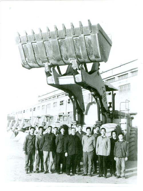 1975年,柳工成功研制了ZL90裝載機(jī),并于1977年通過國家鑒定。圖為ZL90研制小組成員在機(jī)器前合影