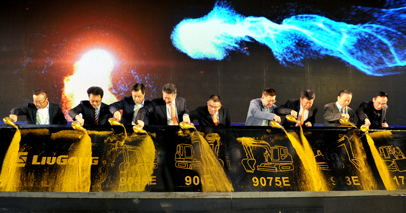 公司高層領(lǐng)導(dǎo)與受邀嘉賓共同發(fā)布2018推出的挖掘機(jī)新產(chǎn)品