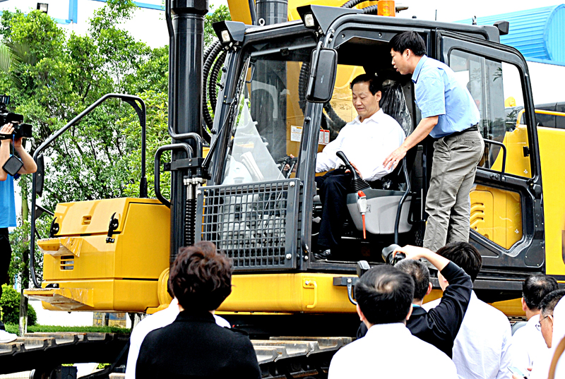 廣西區(qū)黨委書記彭清華體驗(yàn)公司LCG970大型挖掘機(jī)